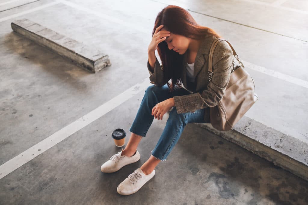 Woman Stressed Out In Parking Lot